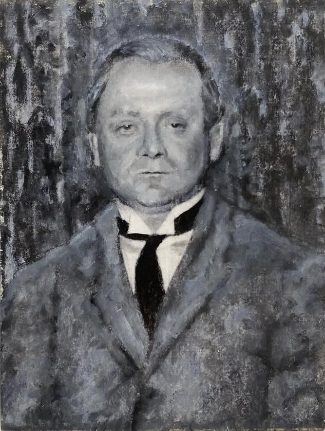 Oil and acrylic on artist’s panel with string and brass plumb bob