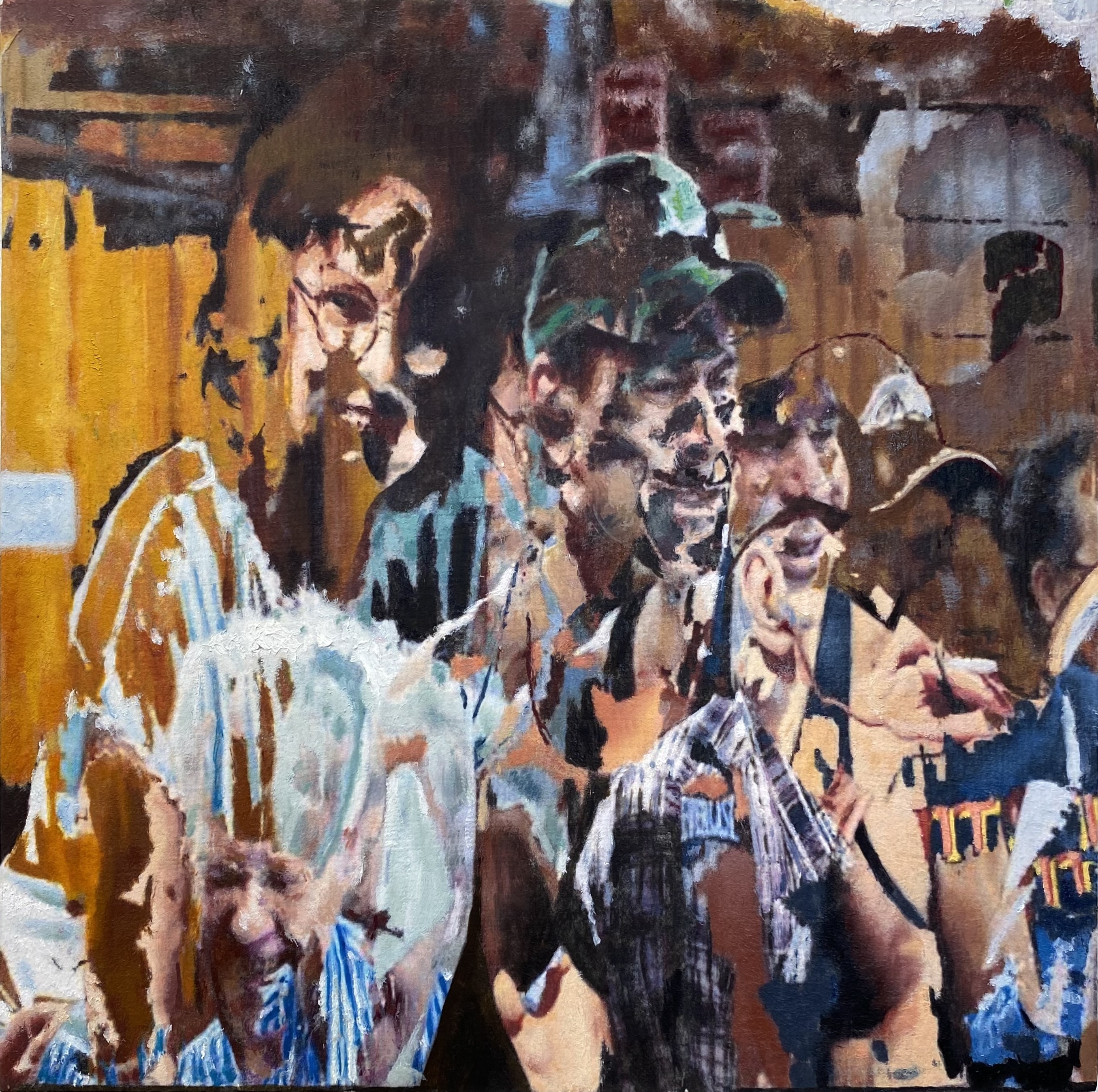 Oil, acrylic, pen, pencil, xerox transfer on three panels